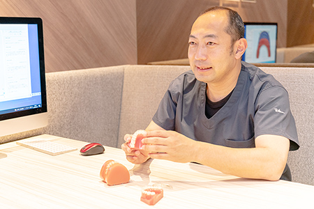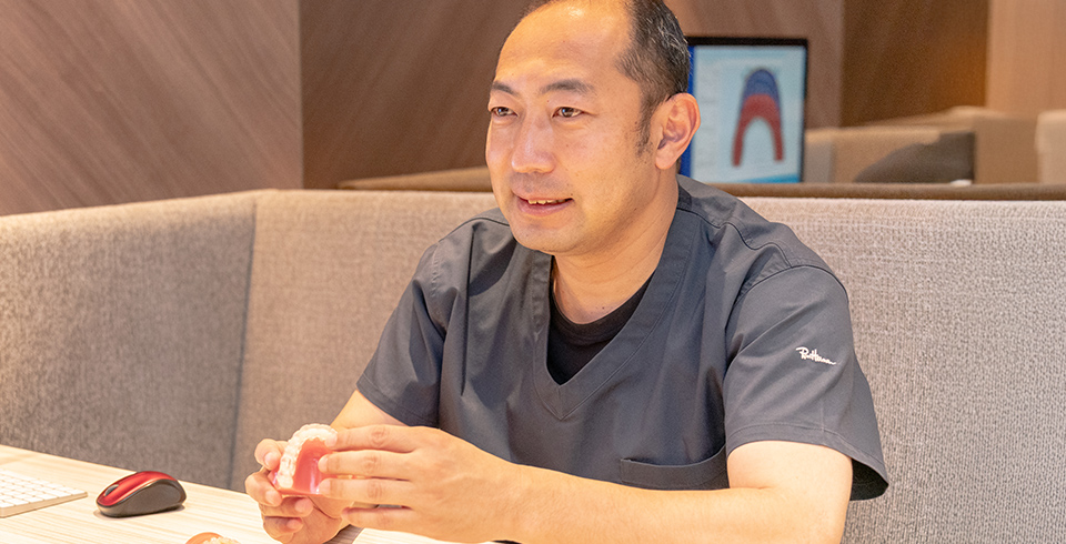一見無口ですが、とても器が大きく、常に高い視座でスタッフや患者さん、そして歯科医療の未来について考えている先生です。診療後にはスタッフを食事に連れて行ってくださることもあり、気さくな一面もあります。
